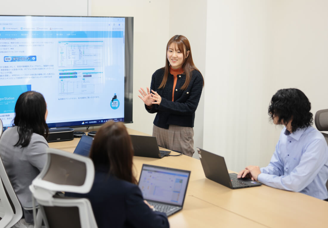 AN-ManagerStationをはじめとする、管理ソフトウェアの設計業務を担当しています。具体的には営業と同行してお客様の要望をヒアリングし、開発とともに解決策を検討、さらにはお客様への提案、現地での構築作業、各種ドキュメントの作成等まで、お客様に寄り添うフロントにも出ていく設計開発エンジニアとして一連の業務に携っています。